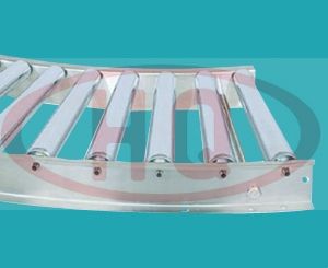 該型輸送機(jī)為90度弧形轉(zhuǎn)彎輸送機(jī),使用不銹鋼錐型滾筒,適用于輸送機(jī)的轉(zhuǎn)彎連接、有防銹要求的場(chǎng)合。
